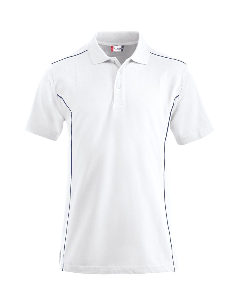 Polo Piqué mit Kontrast Paspelierung und Ton-in-Ton Knopfleiste. Nackenband und Seitenschlitze mit Logoband.